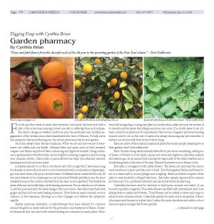 For the past few weeks it seems that everyone I encounter has been sick with a cold or flu or has been nursing a loved one who is suffering from such malaise. The drastic change in weather conditions plus the excitement and multiple engagements of the holiday season have exacerbated this time of illnesses. To help aid in the symptoms that are bothering you, the closest pharmacy may be your garden.