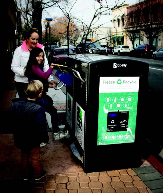| Published January 10th, 2018 | Trash talking with a techie accent | | By Sora O'Doherty |  | Bigbelly trash cans in downtown Walnut Creek Photo Sora O'Doherty | Orinda will soon be considering joining the ranks of those using "smart" trash cans provided by Bigbelly. The company, which has been in business for 14 years, uses technology to make trash and recycling collection greener and more efficient in cities, on university campuses and other venues. Used in a significant number of locales in California, including UC Berkeley, the Yerba Buena Center in San Francisco, and the city of Walnut Creek, Bigbelly receptacles can also be found in all 50 states and 54 countries around the world.