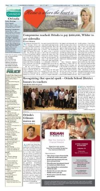 Page A 6 - A 7 Orinda Police BlotterCompromise reached: Orinda to pay $200,000, Wilder to get sidewalksRecognizing that special spark - Orinda School District honors its teachersOrinda's Gilmore moves onGirls Makers Market showcases young entrepreneurs