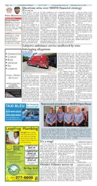 Page A 8 and A9 Questions arise over MOFD financial strategyLafayette ambulance service unaffected by state bid-rigging allegationsNear-record attendance at MOFD Open HouseLafayette School District 2018-19 Teacher of the Year receives special visit
