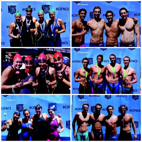 | Published May 30th, 2018 | 2018 NCS Swimming Championships | | Submitted by Catja McDonald |  | Top row, from left: Sophia Kosturos, Katrina Drake, Eloise Engs, Margaux McDonald, Will Clark, Jackson Painter, Will Barber, and Leo Berkman; middle row: Channing Hanley, Maddie Smith, Lizzie Follmer, Emily Rasmussen, Sam Ayers, Michael Wheeler, Christian Meckfessel, and Alec Baker; bottom row: Emily Lo, Ryan Haggland, Emily Gebhardt, Claire Maxwell, Will Nagle, Jacob Parker, Bennett Winther, and Jake Stone. Photo provided | The CIF North Coast Section Championship finals took place May 12 in Livermore. The Monte Vista girls won the meet. Campolindo took second, Miramonte third, and the Acalanes girls came in fourth. On the boys side, San Ramon Valley won with Campolindo coming in second, and Foothill third. The Miramonte and Acalanes boys took 14th and 29th respectively.