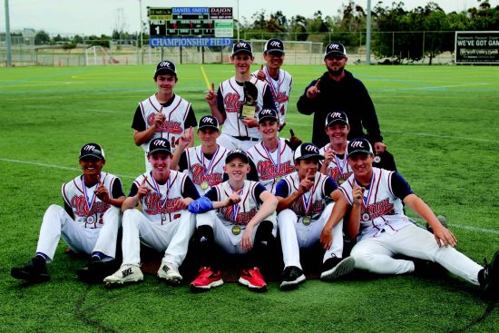 | Published May 30th, 2018 | Double Win at Twin Creeks | | Submitted by Brent Meyers and Susan Linden |  | Back row, from left: coach Dave Manousos, coach Mike Rogers, Brendan Comerford, Robbie Mascheroni, Justin Rodriguez, coach Steve Hammond, Justin Meyers, Adrian Blumberg, Nick Rogers, Philip Jagard, Evan Olson, and coach Brent Meyers; front row: Lucas Concepcion, Charlie Hill, and Dashiell Weaver. Photo Rob Mascheroni | The 13U and 14U Moraga Mavericks won the 680 Diablo League Championship on May 19-20. 13U defeated the Pleasant Hill Hawks 7-6 in a come from behind victory. The Mavericks finished the championship weekend undefeated, completing their regular season with an 18-6 record. The team will begin its summer tournament season Memorial Day weekend at the USSSA NorCal State Championship in Manteca.