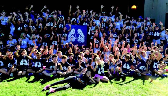 The gathering was impressive. Tens, if not hundreds of Cryan Zellmer's friends of all ages came to the park flooded with warm fall sunlight, in their grey or blue T-shirts showing a pair of lungs, emblazoned with the letter L for Laura. Rubin shared news of Cryan Zellmer who she had seen the day before in the hospital; a friend brought a drone that took a video of the gathering for her.