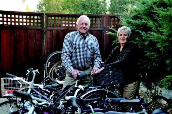 | | | Bobbie and Tom Preston with dontaed bikes Photo Andy Scheck | | | | | | For the past 20 years, Moraga residents Bobbie and Tom Preston have been collecting repairable bikes to be refurbished and given to charitable groups to distribute at Christmas as part of Cycle Recycle. To date over 3,300 bikes have been collected. This year the recipient organizations include Oakland International High School's Earn-A-Bike program, Marsh Creek Detention Center (which repairs and provide bikes to various Contra Costa County charitable programs as Christmas gifts for low-income kids), and Trips for Kids in Marin (which repairs bikes for their Christmas giveaway to children of needy families).
