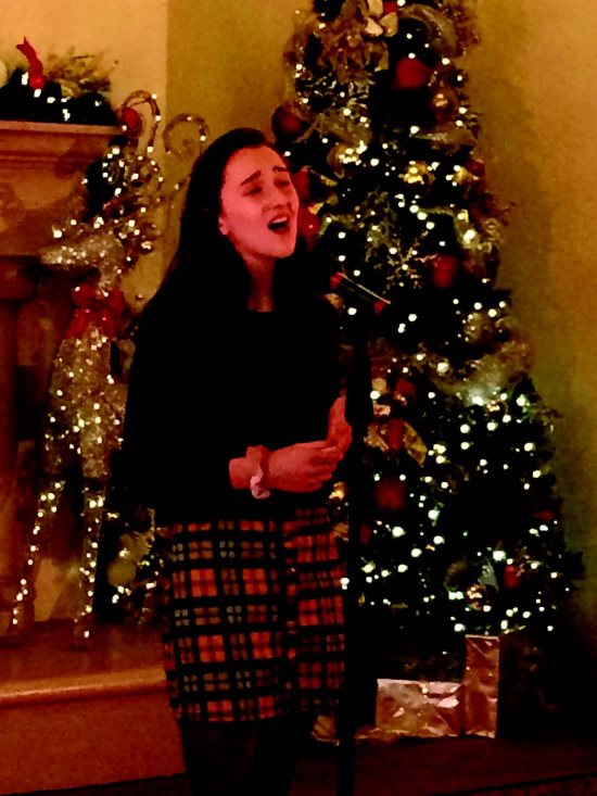 | | Published December 25, 2018 | Arts shine on in Lamorinda | | | By Lou Fancher |  | | Miramonte High School junior Jenni Coletta sings at Dec. 12 Lamorinda Arts Council's annual holiday luncheon. Photo Lou Fancher | During the Lamorinda Arts Council's annual holiday luncheon, instant proof of the organization's value arrives in the uplifted arms, snapping fingers, assertive singing and vocal proclamations of strength from local youth performers. In a private dining room at the Orinda Country Club on Dec. 12, LAC board members, community arts supporters and invited guests enjoyed French chicken topped with artichokes and capers or lemon-parmesan cod while being entertained by the cast of "The Addams Family" from Orinda Intermediate School's Bulldog Theatre (produced by Bay Area Children's Theater), a screening of Lamorinda ShortDocs 2018 winner, "The Homeless Project," and select Lamorinda Idol singers.