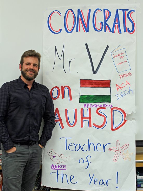 | | Paul Verbanszky, Campolindo's Educator of the Year Photo Alexander Sastokas | | | | | | Paul Verbanszky, Campolindo's social studies teacher, was selected as the Acalanes Union High School District's Educator of the Year for the Moraga school.
