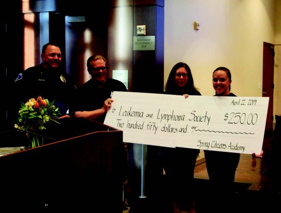 | | Published May 1st, 2019 | Another group graduates from the Citizens' Police Academy | | | By Pippa Fisher |  | | Participants of the most recent Citizens' Police Academy presented the chief with a check for the Leukemia and Lymphoma Society. Photo Pippa Fisher | The spring session of the Citizens' Police Academy ended with a graduation during the April 22 Lafayette City Council meeting. And as a surprise gesture of thanks and appreciation, the class presented the police chief with a check for the Leukemia and Lymphoma Society in his honor.