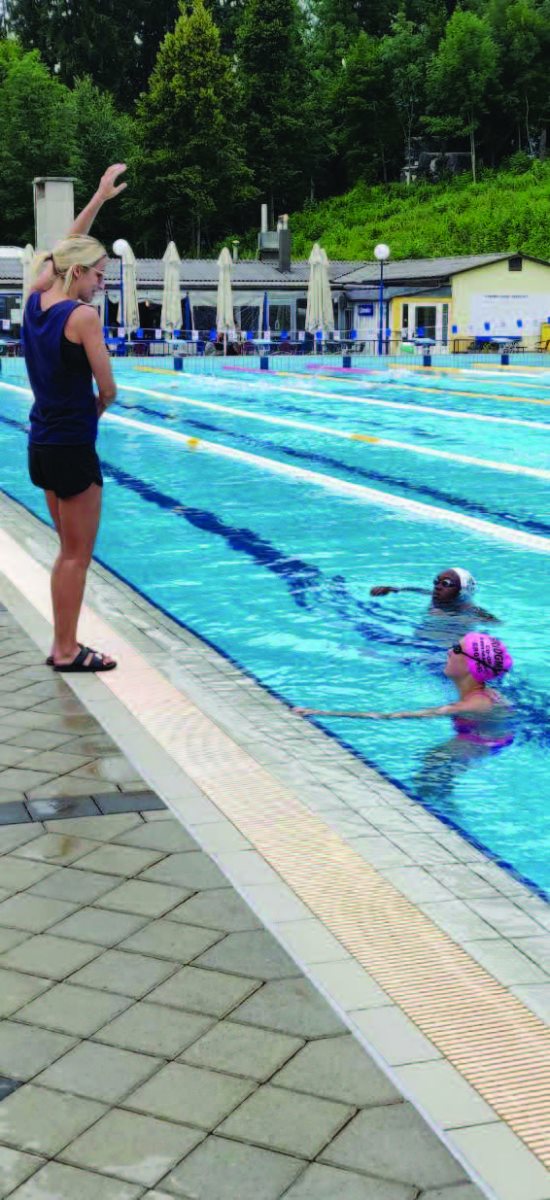 | Published July 24th, 2019 | Campo alum uses Olympic-medal-winning philosophy to champion underserved youths | | By Vera Kochan |  | Kim Vandenberg has undivided attention at recent swim clinic. Photos courtesy Kim Vandenberg | Kim Vandenberg, a Campolindo High School alum (2002), has won numerous swimming medals and is lucky enough to continue her love of the sport traveling the world teaching swim clinics. Not stopping there, she has been chosen as ambassador for Room to Read and Up2Us Sports. Both organizations serve underprivileged children.