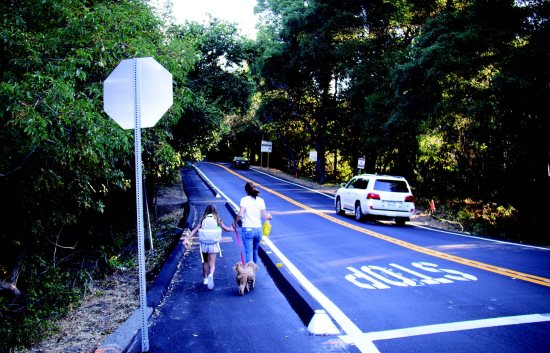 The project, one of a number of summer road improvement projects in Orinda, provides a safe place for children to walk to school along this route. It also offers a safe place for pedestrians to walk, separated from the road by raised berms with reflectors on top to make them visible to drivers.