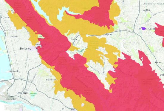 Above is the Orinda-specific fire-threat map. The area coded red is Very High Fire Severity Zone (Tier 3) and orange is High Fire Severity Zone (Tier 2). | | | | | | | | | | | | | |