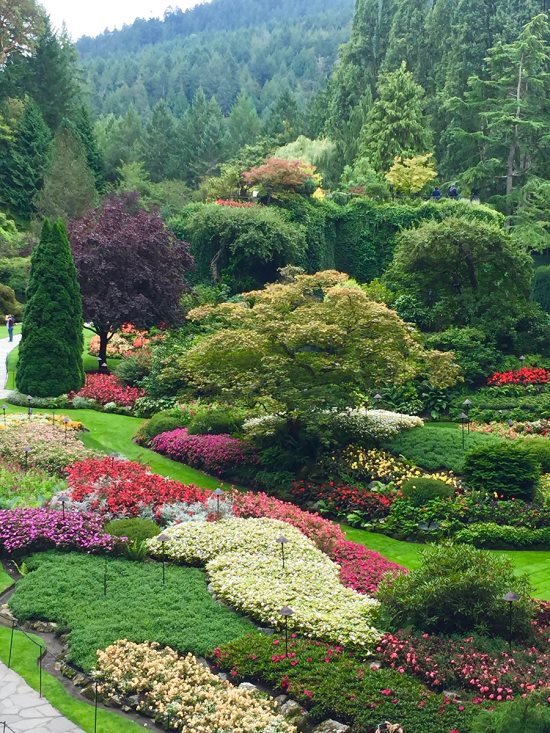 After a hot summer of weeding, pruning, mowing, cleaning, composting and tidying my plots, traveling to Victoria in British Columbia was a welcome respite. Despite the cold and inclement weather on Vancouver Island, we set out to explore the extraordinary National Historic Site of Canada in Brentwood Bay known as The Butchart Gardens.