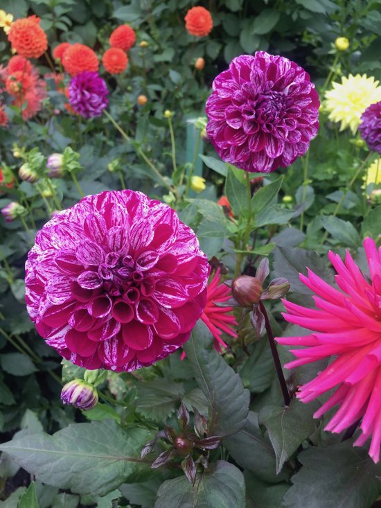 | A border of dahlias of many varieties and sizes were in full bloom. |