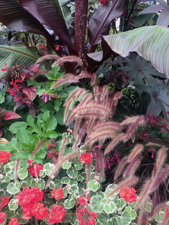 PROVIDE long-lasting beauty for sunny areas with ornamental grasses, geraniums and elephant ear.