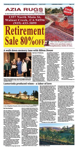 | Published December 11th, 2019 | A walk down memory lane with Hilton House | | By Sora O'Doherty |  | Hilton House Staff Honored. From left: Marilynn Davis, Dulce Lorenco, Cyndi Hilton Girgis, Mayor Inga Miller, Rita Kuhner and Janice Vincak Photo Sora O'Doherty | On a cold, dark Dec. 5 evening, Hilton House Consign/Designs, Inc. shined brightly as guests enjoyed live music, food and drink as the company celebrated its 20th anniversary doing business in Orinda. With "golden ticket" prizes every half hour, guests roamed the shop, filled to the rafters with nostalgic items from vintage jewelry, to antique silverware. New Orinda Library manager Michael Beller bought a colorful pocket square to complement his green jacket.