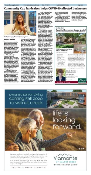 | Published July 22nd, 2020 | Community Cup fundraiser helps COVID-19 affected businesses | | By Vera Kochan |  | Lindsey Lonergan, Community Cup originator Photo provided | Almost one month into the shelter-in-place mandate Moraga Chamber of Commerce Executive Director Kathe Nelson was contacted by Lindsey Lonergan, a junior at San Ramon Valley High School, who originated a fundraising idea dubbed Community Cup.