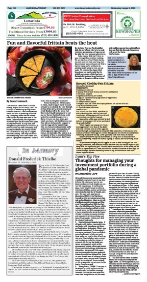 | Published August 5th, 2020 | Lynn's Top Five | Thoughts for managing your investment portfolio during a global pandemic | By Lynn Ballou CFPr |  | Lynn Ballou is a CERTIFIED FINANCIAL PLANNER T professional and Regional Director with EP Wealth Advisors, a Registered Investment Advisory Firm in Lafayette. Information used in the writing of this column is believed to be factual and up-to-date, however, we do not guarantee its accuracy. This column does not involve the rendering of personalized investment advice and is not intended to supplement individualized professional advice. A financial, tax and/or legal professional should be consulted before implementing any of the strategies directly or indirectly suggested and discussed. All investment strategies have the potential for profit or loss. | Given all the economic uncertainty and volatility in markets, I knew it was time to focus this column on how we can keep our plans on track despite our current life experiences. In writing this piece, I was very fortunate to catch up with Adam Phillips, partner and director of Portfolio Strategy for EP Wealth Advisors. You may have seen him on Bloomberg, CNBC, in the Wall Street Journal or other investment news channels and publications. Adam is not only a brilliant portfolio strategist and Chartered Financial Analyst (CFA), but he's also a Certified Financial Planner which makes him uniquely qualified to think not only about portfolio management on a macro level, but also about the impact of today's evolving economic situation and uncertainty on the portfolios and lives of real people. I think you'll find his wisdom very useful.