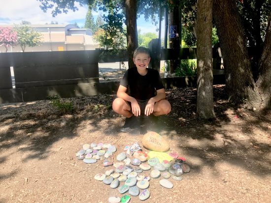 Adam Dolberg, a 12-year-old student at Stanley, says he was inspired to create his rock garden following the June 7 BLM rally in Lafayette which he attended with his mother, Becky Webster. Adam found the speakers' stories at the rally moving, and searched for a way he could do something. "I just wanted to support the cause," says Adam.