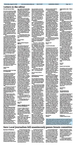 During the next few years, Lafayette will create a new General Plan. And during this time of pandemic, we will be faced with unforeseen challenges as a community. I will miss the valuable service of Mike Anderson and Steven Bliss, who have recently decided to step down as councilmembers, and am grateful to Carl for offering to step back into City leadership.