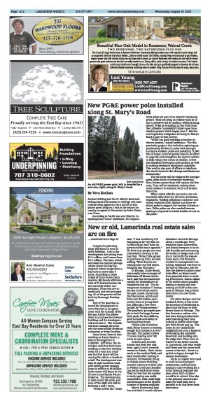 According to Pacific Gas and Electric Co. spokesperson Tamar Sarkissian, the replacement poles are part of an electric hardening project. They are lying on rubber mats in order to preserve the lot surface, which is being leased. PG&E is wrapping up the work from the Lafayette Community Center's gas transmission project which began June 1. Electric and vegetation mitigation all along St. Mary's Road is part of that project.