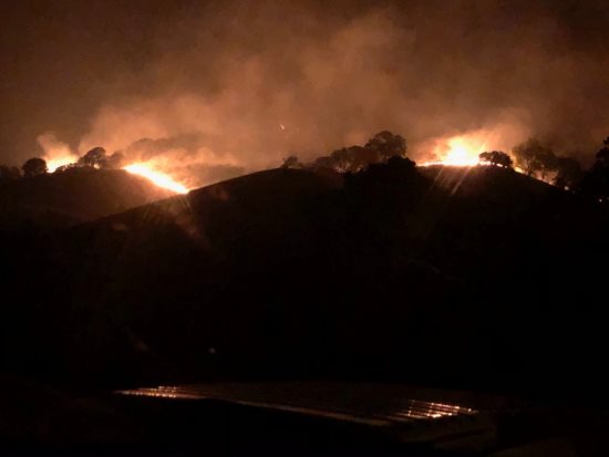 | | Fires raging over the hills. Photo Cynthia Brian | | | | | | In the last few weeks, we've experienced unprecedented weather conditions with temperatures in the triple digits, ferocious winds, low humidity, thunderstorms, and lightning strikes resulting in more perilous and damaging wildfires. Dry conditions will only worsen in the forthcoming months. Air quality is precariously unhealthy with dangerous concentrations of tiny PM 2.5 particles that penetrate deep into the lungs.