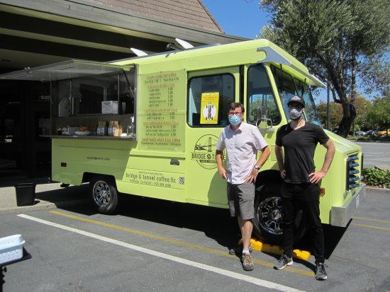 For the coffee truck's schedule visit: www.bridgetunnel.coffee or call (925) 388-6288. Having only just begun serving coffee on wheels in early August, Fulcher and Tillotson have plans to eventually open a brick and mortar coffee shop in Moraga. Fulcher stated, "Great coffee is a destination for those who love it." |