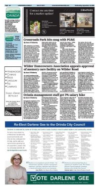 Page A 6 - A 7 Crossroads Park hits snag with PG&EWilder Homeowners Association appeals approval of memory care facility on Wilder RoadOrinda management staff get 3% salary hikeOrinda city council candidates respond to questions