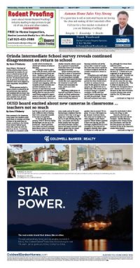 Page A 6 - A 7 Good fences make good neighbors on Rheem to Parkway trailOrinda manages to restore furloughed staffOrinda is still asking, when is it safe to return to school?Orinda Intermediate School survey reveals continued disagreement on return to schoolOUSD board excited about new cameras in classrooms ... teachers not so much