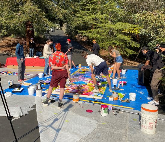 Campolindo High School sophomore Carolyn Considine organized the collaborative art project Nov. 1 at her Lafayette home, working with a group of high school artists to complete a painting on an 8 foot by 12 foot canvas. Considine chose to name the artwork "Project We."