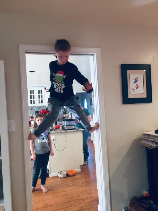 | | | Photos provided | | | | | | Third-grade twins Isaiah and Clara Sargent, age 8, who have been taking online classes through the Meher School in Lafayette, have literally been climbing the walls during their shelter-in-place experience. "They call their new hobbie `wedging,'" said mom, Carolyn Talmadge, "and have been doing it often for the past two weeks." They started "wedging" after seeing it done by the donkey in the movie "The Star," Talmadge explained.