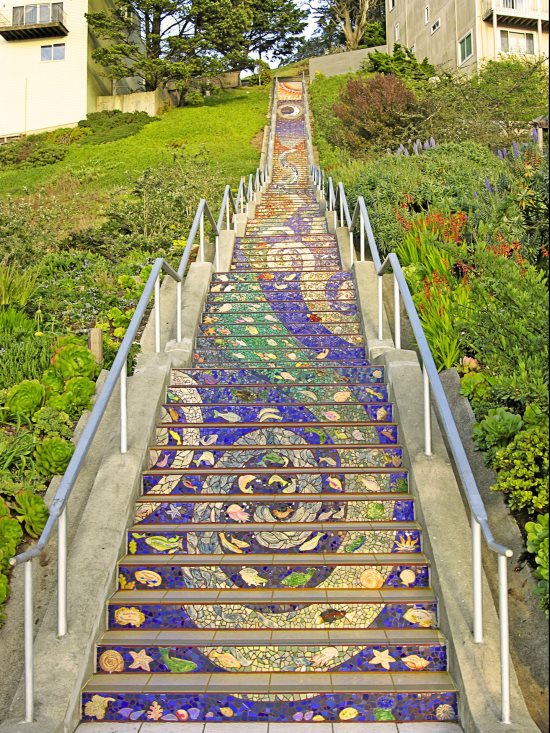 An interactive map on the PAC website can be found at www.lovelafayette.org/city-hall/commissions-committees/public-art-committee/public-art-map/-fsiteid-1 |  | | An example of Aileen Barr's work - tiled steps in San Francisco. Image provided | | | | | | | | | | | |