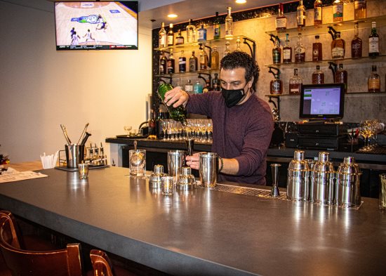 | | Co-owner Blair Bagneschi mixes cocktails at Brothers Public Kitchen, formerly Piccolo Napoli in Theatre Square. Photos Sora O'Doherty | | | | | | Two brothers from Contra Costa County with a lot of bar and restaurant experience who purchased Piccolo Napoli restaurant in Theatre Square have remodeled and reopened the restaurant under the name Brothers Public Kitchen. The restaurant features Italian food, including pizzas and pastas, as well as dinner entrees.