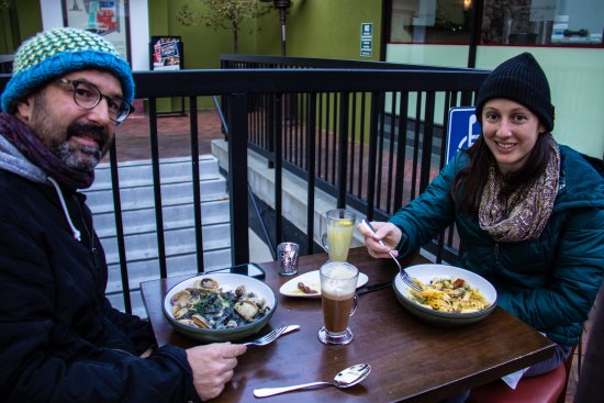 Blair explained that they make pasta fresh every day as well as fresh sauces. One dish, linguine and clams, features black pasta made with squid ink. Their menu also includes some dried pastas.