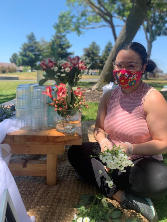 At Golden Poppy, Tom is most active on the creative planning side: the designs and color choices involved in floral displays, tableware, glassware, decorative pillows, blankets, tents, lighting and signage provided. Holmes-Higgin works with clients on timelines, scouts the locations, explains to customers what to expect should weather or circumstances change - last minute pivots are expected during the pandemic, but are true regardless due to Golden Poppy's almost exclusively outdoor venues.