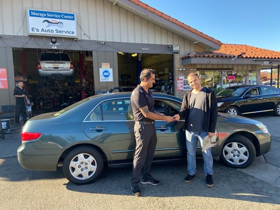 | | Ebne Mujadidi of E's Auto Service and Repair in Moraga hands car keys to an Afghan refugee. Photo provided | | | | | | Thanks to a donation of a car to Keeping Our Promise, East Bay - a local nonprofit that serves former U.S. military translators and their families from Afghanistan who resettle in Alameda and Contra Costa counties - one lucky Afghan refugee was recently handed keys to a car so he could get to work. Ebne Mujadidi of E's Auto Service and Repair on Canyon Road in Moraga, who is also from Afghanistan, donated his repair services to get the car "street worthy."