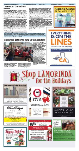 The Lamorinda Weekly published a one-sided editorial supporting DEI in the guise of a news story. (Lamorinda community works to defend DEIB work, published Nov. 24, 2021.) The important news, as reluctantly reported, is that there is "pushback against affirmative diversity, equity and inclusion practices . [and] critical race theory." The local pushback is part of a rapidly growing national movement.
