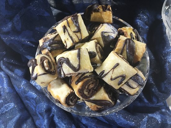 If desired, once out of the oven and cooled, drizzle melted chocolate over top of rugelach, or alternatively, sprinkle with sea salt or powdered sugar.