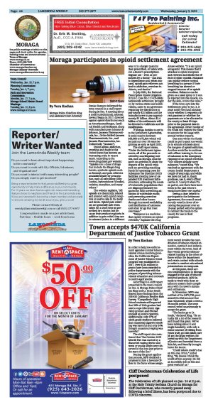 According to a staff report presented to the town council on Dec. 8, Moraga Police Chief Jon King and Lt. Brian South shared some findings from the 2019-20 California Healthy Kids Survey. "Campolindo High School students self-reported that 36% of 11th-graders had used a vape (electronic cigarette) product and 8% had smoked an entire cigarette. Additionally, only 37% of ninth-grade students believed that occasional cigarette smoking was harmful and only 34% thought occasional vaping was harmful."