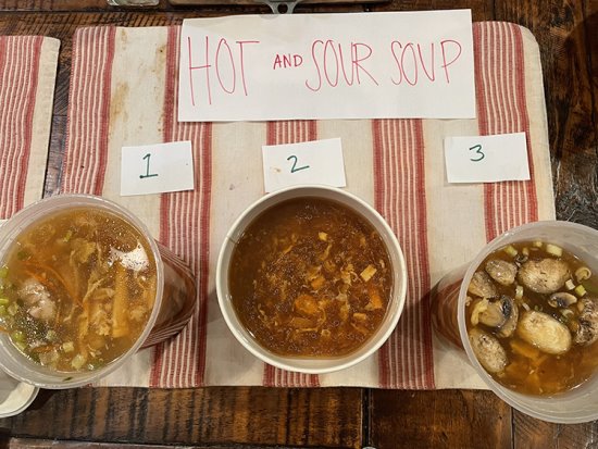 The hot and sour soup winner? A three-way tie. "They were all really good in different ways."