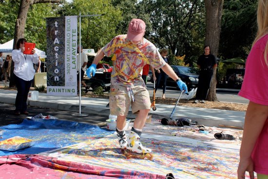 | Published March 2nd, 2022 | Art Gallery at Wilder hosts a lively exhibition in March | | By Sora O'Doherty |  | Artist John Barry demonstrates trAction painting at the Lafayette Art and Wine Festival. Photo courtesy Bill Carmel | The art gallery at Wilder Art & Garden Center will be returning to some in-person events this month. The featured artist for March, Bill Carmel, will be honored at a reception on Sunday, March 6 from 2:30 to 4:30 p.m. Although the gallery is still generally closed to the public owing to the COVID-19 pandemic, there will be in-person viewings, which can be arranged by emailing curator Aniston Breslin at wildergallery@lamorindaarts.org.