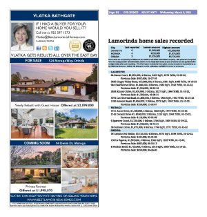 | Published March 2nd, 2022 | Lamorinda home sales recorded | | | | | LAFAYETTE