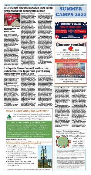 MOFD has firmed up the area of the Shaded Fuel Break project that was made possible by the $6.3 million grant recently received from the California Climate Initiative through Cal Fire. The project "will start at Highway 24 near Cal Shakes, on the north side of 24 at the Wilder off ramp; and work its way down the western side of Wilder subdivision; wrap around the area known as Lost Valley by the PG&E [Pacific Gas & Electric] substation; then around the country club running up along the high ground on Flicker Ridge," explained Winnacker. "So really, moving between Lost Valley, the country club and the community of Canyon; making its way down to Canyon Road; following Canyon Road down to the Valle Vista Staging Area; and then wrapping around the neighborhood by J.M. [Joaquin Moraga Intermediate School]; around Sanders out across to Saint Mary's [College]; and then across through areas just immediately east of the GHAD [Geologic Hazard Abatement Districts]; and terminate at Sky-Hy at the Moraga-Lafayette line." Winnacker stressed that only dead or dying trees will be removed in addition to any limbing-up of the lower portions of trees that are close to the ground.