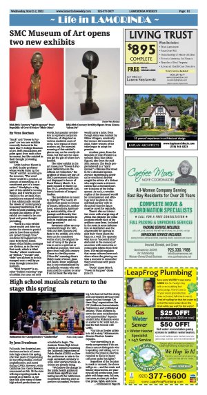 The other exhibit in the art museum is "Power & Purpose: Reflections on the African Art Collection," the artifacts of which are part of SMC's permanent collection and displayed in honor of Black History Month. It is guest curated by Kathy Littles, Ph.D., provost with California Institute of Integral Studies.