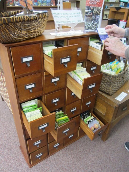 The Moraga Seed Library's official opening was Feb. 15, and in just three days at least 85 people came by to "check out" approximately 280 packets of seeds. MGC collected over 2,500 seed packets from more than 20 vendors and garden groups. Thanks to the efforts of BSA Scout Troop 402 (one of the largest all-girl troops in the nation), who helped stamp, sort and alphabetize the seed packets prior to placement in three separate card catalogs, patrons could easily look through labeled drawers and find exactly what they were looking for, if not more.
