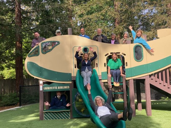Lagab moved from Oakland to Lafayette because she thought it would be a great place for her children to go to school. "When we got here two years ago, this park was just wood chips and we're so excited that the park is officially opening," Lagab says while attending the ribbon cutting ceremony of the reimagined airport themed park on April 18. Lagab lives in an apartment complex on the east side of town, about a 10-minute walk from the park. Like many in the city, Lagab longed for an outdoor space to bring her kids during the pandemic. "I was wondering where are all the parks in Lafayette," she says with a bright smile. "And now, it's here. We're so excited to play."