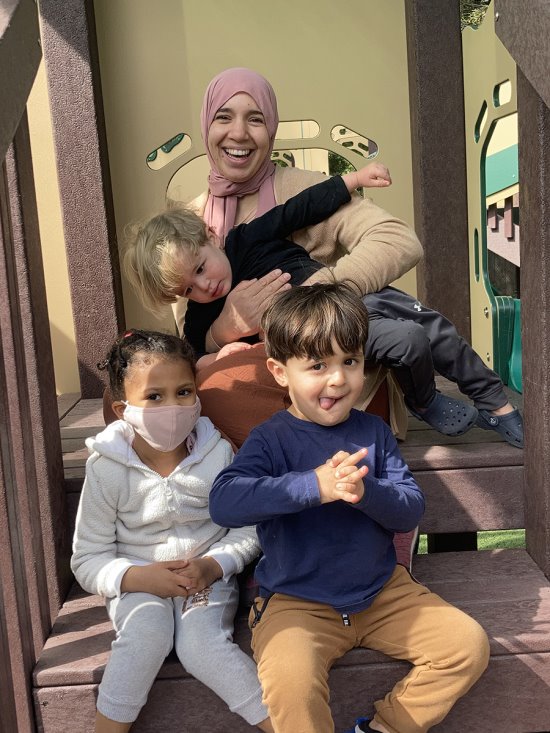Jay Lifson from the Lafayette Chamber of Commerce has many fond memories of the park when it had a pirate theme and was also known as the Pirate Park. Even though his grandson has outgrown the park, Lifson says he's happy to see the new iteration of the park - Airport Park - come to life. "We needed this park in the downtown area so badly," Lifson says. "They've done a beautiful job laying it out and it will be a great place for years to come." |  | Zinab Lagab celebrates the Lafayette airport-themed Brook Street Park with her children. Photo Sharon Sobotta | | | | | | | | | | | |