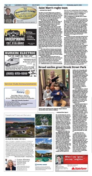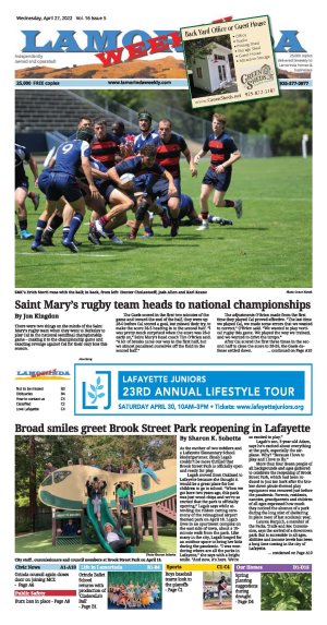 | Published April 27th, 2022 | Broad smiles greet Brook Street Park reopening in Lafayette | | By Sharon K. Sobotta |  | City staff , commissioners and council members at Brook Street Park on April 18. Photo Sharon Sobotta | As the mother of two toddlers and a Lafayette Elementary School kindergartener, Zinab Lagab couldn't be more thrilled that Brook Street Park is officially open and ready for play.