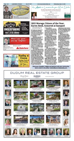 Unfortunately for Moraga, Reed is retiring to South Carolina this month to live near her sister. Being named 2022 Moraga Citizen of the Year is a coincidental, yet apropos, send-off. | | | | | | | | | | | | | |
