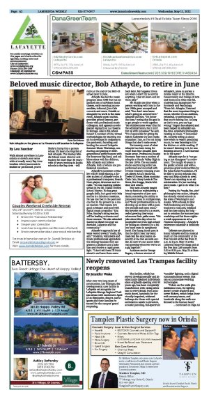 Athayde's successor at Stanley will be Todd Minson, a former student of Athayde's who is a professional trumpeter, French Horn player, drummer and vocalist. "He was teaching middle school in the Mt. Diablo Unified School District. He has great people skills, he's good with kids and he is a fabulous musician. He has one foot in the past and one foot in the present as a music teacher. That means he's good at Mozart and good with digital music programs." Eric Price, Stanley's string teacher, will be leading orchestra and those courses. "He also attended Stanley so these two guys understand Lafayette and the community."