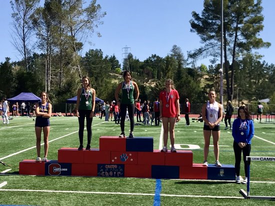 Lamorinda high school students sweep varsity women's pole vault finals at Diablo Athletic League (DAL) track and field championships on April 30. Miramonte sophomores Jessica Youn and Ell