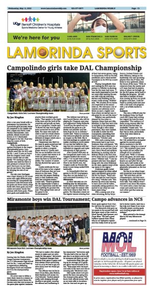 Campolindo's next game was on May 10, after press time, against the No. 3 seeded Tamalpais High School in Mill Valley and if they win that game, they would play the winner of the Justin-Siena - Bishop O'Dowd game on May 12.